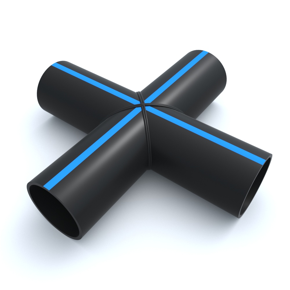 Крестовина сварная равнопроходная ПНД 90º 400x450x1300 мм SDR-13,6 используется при выполнении прокладки трубопроводов под разными углами.